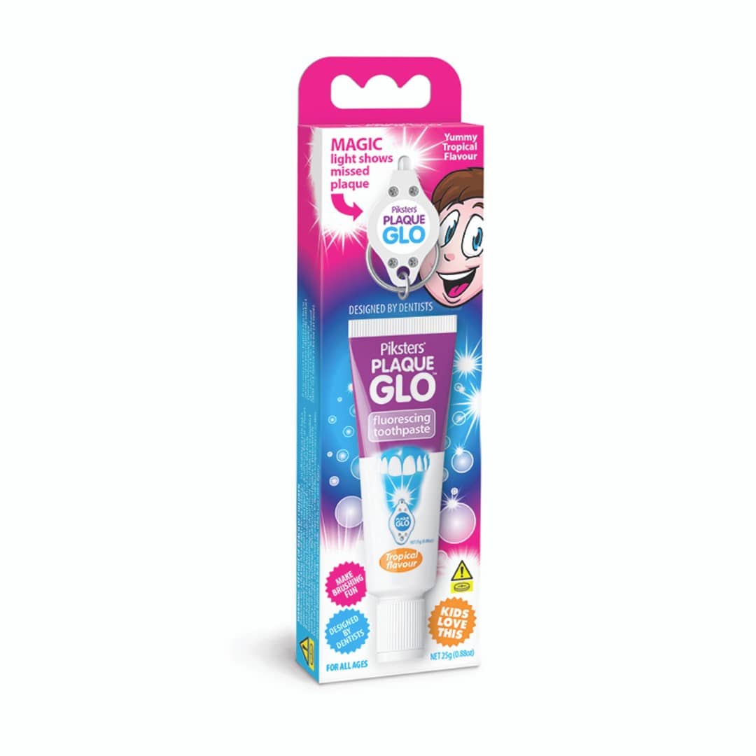 Piksters Plaque GLO katukontrolli hambapasta märgistab hambapesu käigus ära katuga kohad ja toob välja piirkonnad, kus harjamist ja niidiga puhastamist on rohkem vaja.
